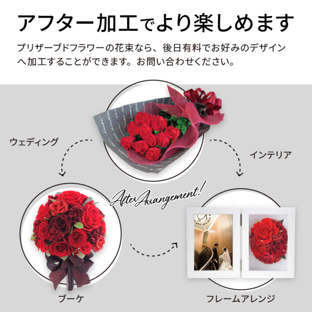 TOPシーンで選ぶ 誕生日祝い・プリザーブドフラワーのバースデーギフト プリザーブドフラワー ステム付きローズ【108輪の花束】 価格: ¥330,000 (税込) [ポイント還元 3,300ポイント〜] 予約期間: 在庫がない場合でも取り寄せ可能です: 選択してください お気軽にお問い合わせください。 メッセージカード: 選択してください カード不要(¥0) 【無印字】お客様手書き用カード/送付先別の場合添付不可(¥0) 【自由文印字】カード→カート内備考欄へ内容指定(¥0) 【定型文】母の日用定型文(¥0) 【定型文】ありがとう(¥0) 【定型文】ありがとうございます(¥0) 【定型文】日頃の感謝の気持ちを込めて(¥0) 【定型文】お誕生日おめでとうございます(¥0) 【定型文】ご開業おめでとうございます(¥0) 【定型文】ご開店おめでとうございます(¥0) 【定型文】ご結婚おめでとうございます(¥0) 【定型文】おめでとうございます(¥0) 【定型文】お世話になりました(¥0) 【定型文】お疲れ様でした(¥0) 【定型文】これからもよろしくお願いします(¥0) 【定型文】いつまでもお元気でいてくださいね(¥0) 【定型文】お見舞い申し上げます(¥0) 【定型文】お悔やみ申し上げます(¥0) 【定型文】Thank You!(¥0) 【定型文】Happy Birthday(¥0) 【定型文】Happy Wedding(¥0) 【定型文】Especially for You(¥0) 【定型文】Congratulations!(¥0) 【定型文】クリスマス用定型文(¥0) 【定型文】父の日用定型文(¥0) 【定型文】敬老の日用定型文(¥0) 【定型文】フラワーバレンタイン用定型文(¥0) 【定型文】ホワイトデー用定型文(¥0) 【箔】Thank You ありがとうございます(¥330) 【箔】Happy Birthday お誕生日おめでとうございます(¥330) 【箔】Congratulations おめでとうございます(¥330) 【箔】Happy Wedding ご結婚おめでとうございます(¥330) 【箔】Especially for You 特別なあなたへ(¥330) 有料アクリルケース(要見積もり): 選択してください 不要 【アクリルケース・要】花と一緒にお届け(見積) 【アクリルケース・要】花を先にお届け(見積) ※納期2週間・キャンセル不可 数量: 個 カラー在庫購入レッド 出荷:15営業日○ ブルー出荷:15営業日○ ベイビーピンク 出荷:15営業日○ ホットピンク 出荷:15営業日○ イエロー 出荷:15営業日○ オレンジ 出荷:15営業日○ ホワイト 出荷:15営業日○ カラー在庫購入レッド 出荷:15営業日○ ブルー出荷:15営業日○ ベイビーピンク 出荷:15営業日○ ホットピンク 出荷:15営業日○ イエロー 出荷:15営業日○ オレンジ 出荷:15営業日○ ホワイト 出荷:15営業日○ 返品・交換について 5.0 (2件) Rose Collection ?108輪のバラが奏でる、永遠の愛の物語? 一生に一度の瞬間を演出する最高級プリザーブドフラワー 厳選された108輪の芸術品級バラは、「永遠の愛」と「結婚してください」の想いを象徴。まるで生花のような美しさを長年保ち、あなたと大切な方の愛の記憶を永遠に刻みます。 匠の技が織りなす表現品 一輪一輪を丁寧に選び抜き、熟練の職人による繊細な手作業で仕上げています。あなたの想いにふさわしい、最高のプロポーズをサポートします。 ラグジュアリーな演出 花の色合いに合わせ、デザイナー厳選のラッピングペーパーとリボンで仕上げることで、一層の高級感を演出。プロポーズの舞台にふさわしい、圧倒的な存在感をお届けします。 クオリティ 最高級バラのみ使用 肉厚で艶やかな質感を持つプリザーブドフラワーを採用 108輪の深い意味 「永遠の愛」を象徴する特別な本数で、プロポーズに最適 メンテナンスフリー 特殊加工により水やり不要、数年間にわたり美しさをキープ 品質保証付き 完璧な状態でお届けするための保証書付き。万一の破損時も安心の交換対応いたします 特別な瞬間のために 当店の108輪バラは、数多くのお客様のプロポーズを成功へと導いてきました。 「丁寧な対応のおかげで、スムーズに準備ができ、理想通りのプロポーズを実現できました。彼女の驚きと喜ぶ姿を見て、本当にお願いして良かったと感じました。」 — 東京都 Y.T様(35歳・経営者) 「ホテルの一室に花束を飾り、特別な雰囲気の中でプロポーズ。仕上がりも期待で、彼女も感動以上でした。特製のアクリルケースに入った花束は、新居に飾り、思い出として大切にしています。」 — 大阪市 K.S様(38歳・医師) ご注文から配送までの流れ 初回ご相談 お客様の理想やご希望をお聞かせいただき、一緒に夢のプロポーズプランを形にしていきます オーダーメイド制作 一輪一輪に心を込め、丁寧な手作業でお作りいたします 配送・設置 ご希望の日時・場所へ、最高の状態でお届けいたします(高級ホテルなどへの事前お届けも可能です) バラの色別の花言葉 バラの色によって込められた意味が変わります。あなたの想いに合わせてお選びください。 RED [愛情][美][情熱][あなたを愛します] PINK [上品][気品][温かい心][恋の誓い] BLUE [夢叶う][可能性][神の祝福] YELLOW [あなたを恋します][友情][はげまし] ORANGE [絆][信頼][元気を出して][健やか] WHITE [心からの尊敬][無邪気][清純][相思相愛] GREEN [あなた