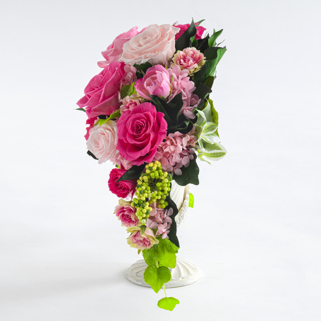 TOPシーンで選ぶ 法人様向けプリザーブドフラワーギフト案内TOP プリザーブドフラワー ボーゲン クラシカル 価格: ¥33,000 (税込) [ポイント還元 330ポイント〜] 販売期間: メッセージカード: 選択してください カード不要(¥0) 【無印字】お客様手書き用カード/送付先別の場合添付不可(¥0) 【自由文印字】カード→カート内備考欄へ内容指定(¥0) 【定型文】母の日用定型文(¥0) 【定型文】ありがとう(¥0) 【定型文】ありがとうございます(¥0) 【定型文】日頃の感謝の気持ちを込めて(¥0) 【定型文】お誕生日おめでとうございます(¥0) 【定型文】ご開業おめでとうございます(¥0) 【定型文】ご開店おめでとうございます(¥0) 【定型文】ご結婚おめでとうございます(¥0) 【定型文】おめでとうございます(¥0) 【定型文】お世話になりました(¥0) 【定型文】お疲れ様でした(¥0) 【定型文】これからもよろしくお願いします(¥0) 【定型文】いつまでもお元気でいてくださいね(¥0) 【定型文】お見舞い申し上げます(¥0) 【定型文】お悔やみ申し上げます(¥0) 【定型文】Thank You!(¥0) 【定型文】Happy Birthday(¥0) 【定型文】Happy Wedding(¥0) 【定型文】Especially for You(¥0) 【定型文】Congratulations!(¥0) 【定型文】クリスマス用定型文(¥0) 【定型文】父の日用定型文(¥0) 【定型文】敬老の日用定型文(¥0) 【定型文】フラワーバレンタイン用定型文(¥0) 【定型文】ホワイトデー用定型文(¥0) 【箔】Thank You ありがとうございます(¥330) 【箔】Happy Birthday お誕生日おめでとうございます(¥330) 【箔】Congratulations おめでとうございます(¥330) 【箔】Happy Wedding ご結婚おめでとうございます(¥330) 【箔】Especially for You 特別なあなたへ(¥330) 立て札可能(枝に取り付け): 選択してください 【立て札】不要 【立て札】要:お祝い用→備考欄に内容指定 【立て札】要:お供え用→備考欄に内容指定 有料アクリルケース(税別 19,000円): 選択してください 不要 【アクリルケース・要】花と一緒にお届け(¥20,900) 【アクリルケース・要】花を先にお届け(¥20,900) ※納期2週間・キャンセル不可 数量: 個 カラー在庫購入レッド○ ピンク【出荷:15営業日】× イエロー×オレンジ○ カラー在庫購入レッド○ ピンク【出荷:15営業日】× イエロー×オレンジ○ 返品・交換について 5.0 (7件) ★花器欠品の際は類似の器でお届けする場合がございます。 予めご了承ください。 ギフト対応・サービス詳細 ◆この商品は白い持ち手つきの箱でお届けいたしますので 手つき袋は必要ございません。 ◆プリザーブドフラワーの取り扱い説明カード入り。 ※大きな文字の説明書をご希望の方は備考欄へご記入ください。 商品サイズ 幅40cm×奥行き16cm×高さ28cm 重さ:600g (参考値) 材質 ◆花材:プリザーブドフラワー(バラ、アジサイ、リーフ、苔)・アーティフィシャルフラワー(ラナンキュラス等小花、ワイルドベリー、リーフ) ◆花器:ストーン、ペイント樹脂 プリザーブドフラワーは、水やり等の手間なく長期間保つ事から、バースデーギフト(誕生日祝い)・結婚祝い・開業祝い・開店祝い・新築祝い・内祝い・出産祝い・両親贈呈ギフトなどの贈り物、法人様向けご進物にはもちろん、アート性の高い作品はご自宅用のインテリアやオフィス・ショップのディスプレイに、落ち着いた色や故人のお好きだった色や花はお供え・仏事にもご利用頂いております。ブリザードフラワー、ブリザーブドフラワーではなく「保存する」という意味の「プリザーブドフラワー/preserved flower」が正しい名称となります。直射日光、水気・湿気を避けるとより美しさが長持ちします。 この商品はこんなお客様から選ばれています。 Belles fleurs ・法人様向けに、高級感のあるきちんとしたギフトを贈りたい ・社長、役員就任祝い、開業祝いなどお祝い事に ・オフィスエントランス、マンションのロビーなどのインテリアに 美しい弧を描く弓形のアレンジメント ひねったような斜めの曲線が優美な花器と花の一体感が美しい弓形のアレンジメントです。ひとつひとつの花の個性を生かし、花の高さや向きを変えながら自然な曲線となるよう形作ります。 高い技術力を持ったベル・フルールならではのデザイン。 ご自宅のインテリアにはもちろん開業祝いなどの各種ギフトに選ばれる実店舗でも大変人気の商品です。 独自の技術で自然の花をさらに美しく ため息の出るような美しい大輪のバラ。 自然のままでも綺麗なバラですが、独自の技術でさらに美しく開花の加工を施し、アレンジメントしています。ひとつひとつの花の表情にこだわりを持つことで、上質なアレンジメントが完成します。 開業祝いなどのBtoBにも「プリザーブドフラワー」が選ばれています。 法人様向けのお祝い事によく使われる「胡蝶蘭」の鉢植えですが、贈られた方からは 「世話や枯れた後の処理が大変」「会社が胡蝶蘭だらけに・・・」というお声も。 一切お手入れ不要のプリザーブドフラワーなら、相手に負担をかける事なく贈ることができ、 「胡蝶蘭だと背の