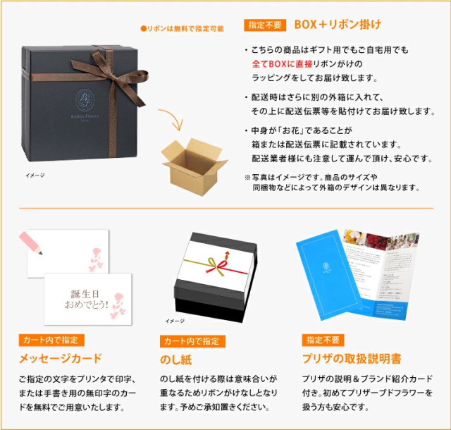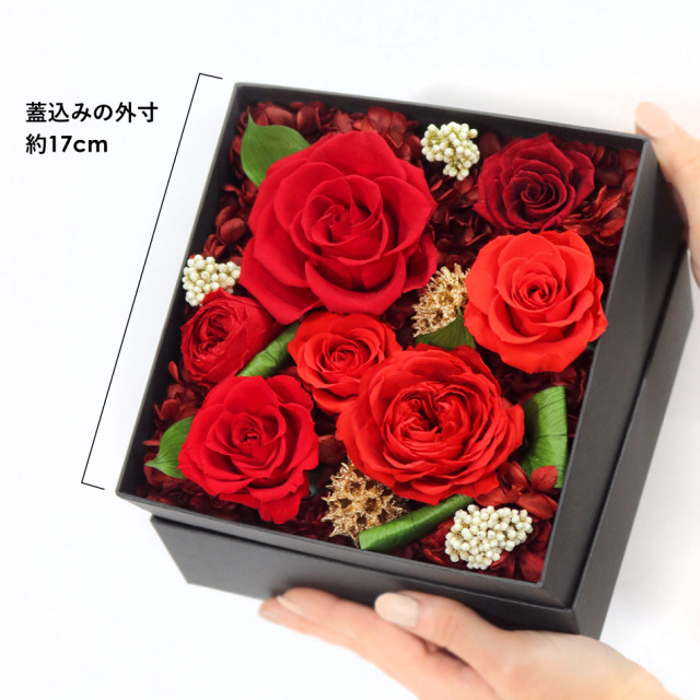 TOP花で選ぶ バラ プリザーブドフラワー ローズボックスフラワー 価格: ¥16,500 (税込) [ポイント還元 165ポイント〜] 販売期間: メッセージカード: 選択してください カード不要(¥0) 【無印字】お客様手書き用カード/送付先別の場合添付不可(¥0) 【自由文印字】カード→カート内備考欄へ内容指定(¥0) 【定型文】母の日用定型文(¥0) 【定型文】ありがとう(¥0) 【定型文】ありがとうございます(¥0) 【定型文】日頃の感謝の気持ちを込めて(¥0) 【定型文】お誕生日おめでとうございます(¥0) 【定型文】ご開業おめでとうございます(¥0) 【定型文】ご開店おめでとうございます(¥0) 【定型文】ご結婚おめでとうございます(¥0) 【定型文】おめでとうございます(¥0) 【定型文】お世話になりました(¥0) 【定型文】お疲れ様でした(¥0) 【定型文】これからもよろしくお願いします(¥0) 【定型文】いつまでもお元気でいてくださいね(¥0) 【定型文】お見舞い申し上げます(¥0) 【定型文】お悔やみ申し上げます(¥0) 【定型文】Thank You!(¥0) 【定型文】Happy Birthday(¥0) 【定型文】Happy Wedding(¥0) 【定型文】Especially for You(¥0) 【定型文】Congratulations!(¥0) 【定型文】クリスマス用定型文(¥0) 【定型文】父の日用定型文(¥0) 【定型文】敬老の日用定型文(¥0) 【定型文】フラワーバレンタイン用定型文(¥0) 【定型文】ホワイトデー用定型文(¥0) 【箔】Thank You ありがとうございます(¥330) 【箔】Happy Birthday お誕生日おめでとうございます(¥330) 【箔】Congratulations おめでとうございます(¥330) 【箔】Happy Wedding ご結婚おめでとうございます(¥330) 【箔】Especially for You 特別なあなたへ(¥330) ブランドバック: 選択してください 【袋】不要(¥0) 【袋】購入品ひとつが入るサイズの袋1枚(¥330) 【袋】購入品全てが入るサイズの袋1枚(¥330) 【袋】予備の袋希望(1商品につき2枚)(¥660) リボンorのし紙: 選択してください 【リボン】おまかせ(¥0) 【リボン】A茶細(¥0) 【リボン】Bロゴ(¥0) 【リボン】C金ラメ(¥0) 【リボン】D金サテン(¥0) 【リボン】Eグレー(¥0) 【リボン】リボン不要(¥0) 【のし】御祝(花結び) ※結婚祝と快気祝以外の用途(¥0) 【のし】寿(結婚祝い、引き出物等)(¥0) 【のし】祝 御開業(開業祝い)(¥0) 【のし】祝 御開店(開店祝い)(¥0) 【のし】祝 御新築(新築祝い)(¥0) 【のし】祝 御竣工(大型施設/ビル等の新築祝い)(¥0) 【のし】祝 ご出産(出産祝い)(¥0) 【のし】祝 ご入学(入学祝い)(¥0) 【のし】祝 ご卒業(卒業祝い)(¥0) 【のし】祝 ご成人(成人式のお祝い)(¥0) 【のし】祝 ○婚式/結婚何年目かをご記入ください(¥0) 【のし】御年賀(新年のご挨拶)(¥0) 【のし】御中元(夏のご挨拶)(¥0) 【のし】御歳暮(年の瀬、一年のご挨拶)(¥0) 【のし】快気祝(お見舞いへの返礼)(¥0) 【のし】(結婚)内祝 (結婚祝いの返礼)(¥0) 【のし】(出産)内祝/お子様の名前・かな要記入(¥0) 【のし】内祝(花結び) ※結婚・出産以外の用途(¥0) 【のし】祝 御改築(改築祝い)(¥0) 【のし】無印字のし(表書き無し)【花結び】(¥0) 【のし】無印字のし(表書き無し)【10本結び切】(¥0) 【のし】無印字のし(表書き無し)【5本結び切り】(¥0) 【のし】無印字のし(表書き無し)【仏式弔事用】(¥0) 【のし】御供(仏式)(¥0) 【のし】御霊前(仏式 49日前日まで)(¥0) 【のし】御仏前(仏式 49日以降)(¥0) 【のし】志(仏式の返礼)(¥0) 【のし】その他の表書き→備考欄に記載(¥0) 包装紙: 選択してください 【包】不要(クリアケースor箱にリボンがけ)(¥0) 【包装紙】水色ベル・フルールロゴ(¥330) 【包装紙】ブラウン(¥330) 【包装】梨地バッグ(¥330) 数量: 個 カラー在庫購入レッド× ピンク○ ブルー× カラー在庫購入レッド× ピンク○ ブルー× 返品・交換について 5.0 (1件) ギフトサービス 即日発送 無料ラッピング メッセージカード のし立札 説明書 手つき袋 包装紙 取り寄せ 領収証・請求書 Gift Service Details この商品はクリアケース入りでお届けいたします。 プリザーブドフラワーの取り扱い説明カード入り。 ※大きな文字の説明書をご希望の方は備考欄へご記入ください。 Product Dimensions Product Size 幅17cm×奥行き17cm×高さ12cm重さ:200g (参考値) Materials 花材:(バラ、アジサイ、ライスフラワー、アンバーバーム、リーフ) 花器:紙 長期間飾れる 水やり不要 About Preserved Flowers プリザーブドフラワーは、水やり等の手間なく長期間保つ事から、バースデーギフト(誕生日祝い)・結婚祝い・開業祝い・開店祝い・新築祝い・内祝い・出産祝い・両親贈呈ギフトなどの贈り物、法人様向けご進物にはもちろん、アート性の高い作品はご自宅用のインテリアやオフィス・ショップのディスプレイに、落ち着いた色や故人のお好きだった色や花はお供え・仏事にもご利用頂いております。 ブリザードフラワー、ブリザーブドフラワーではなく「保存する」という意味の「プリザーブドフラワー/preserved flower」が正しい名称となります。直射日光、水気・湿気を避けるとより美しさが長持ちします。 商品説明 「花束・一輪のバラ」特集のバナーへ移動 インテリアの