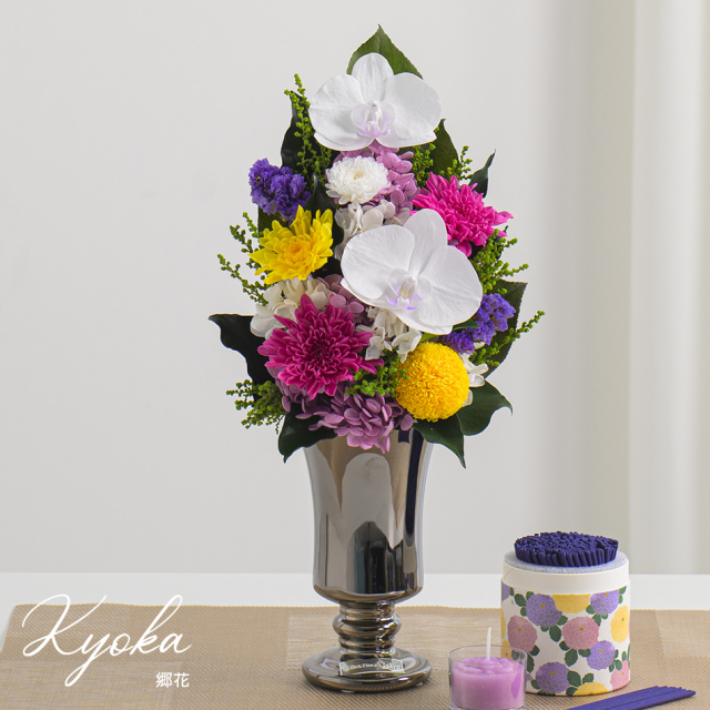 TOPシーンで選ぶ 仏花・お供え花・お悔やみの花 プリザーブドフラワー 郷花(きょうか) 価格: ¥22,000 (税込) ~ ¥44,000 (税込) [ポイント還元 220ポイント〜] 販売期間: メッセージカード: 選択してください カード不要(¥0) 【無印字】お客様手書き用カード/送付先別の場合添付不可(¥0) 【自由文印字】カード→カート内備考欄へ内容指定(¥0) 【定型文】母の日用定型文(¥0) 【定型文】ありがとう(¥0) 【定型文】ありがとうございます(¥0) 【定型文】日頃の感謝の気持ちを込めて(¥0) 【定型文】お誕生日おめでとうございます(¥0) 【定型文】ご開業おめでとうございます(¥0) 【定型文】ご開店おめでとうございます(¥0) 【定型文】ご結婚おめでとうございます(¥0) 【定型文】おめでとうございます(¥0) 【定型文】お世話になりました(¥0) 【定型文】お疲れ様でした(¥0) 【定型文】これからもよろしくお願いします(¥0) 【定型文】いつまでもお元気でいてくださいね(¥0) 【定型文】お見舞い申し上げます(¥0) 【定型文】お悔やみ申し上げます(¥0) 【定型文】Thank You!(¥0) 【定型文】Happy Birthday(¥0) 【定型文】Happy Wedding(¥0) 【定型文】Especially for You(¥0) 【定型文】Congratulations!(¥0) 【定型文】クリスマス用定型文(¥0) 【定型文】父の日用定型文(¥0) 【定型文】敬老の日用定型文(¥0) 【定型文】フラワーバレンタイン用定型文(¥0) 【定型文】ホワイトデー用定型文(¥0) 【箔】Thank You ありがとうございます(¥330) 【箔】Happy Birthday お誕生日おめでとうございます(¥330) 【箔】Congratulations おめでとうございます(¥330) 【箔】Happy Wedding ご結婚おめでとうございます(¥330) 【箔】Especially for You 特別なあなたへ(¥330) 立て札orのし紙(ケース正面貼付け): 選択してください 【立て札/のし紙】不要 【立て札】お祝い用→備考欄に内容指定 【立て札】お供え用→備考欄に内容指定 【のし】御祝 ※結婚祝/快気祝を除く 【のし】寿(結婚祝い、引き出物等) 【のし】祝 御開業(開業祝い) 【のし】祝 御開店(開店祝い) 【のし】祝 御新築(新築祝い) 【のし】祝 御竣工(大型施設/ビル等の新築祝い) 【のし】祝 ご出産(出産祝い) 【のし】祝 ご入学(入学祝い) 【のし】祝 ご卒業(卒業祝い) 【のし】祝 ご成人(成人式のお祝い) 【のし】祝 ○婚式/結婚何年目かをご記入ください 【のし】御年賀(新年のご挨拶) 【のし】御中元(夏のご挨拶) 【のし】御歳暮(年の瀬、一年のご挨拶) 【のし】快気祝(お見舞いへの返礼) 【のし】(結婚)内祝 (結婚祝いの返礼) 【のし】(出産)内祝/お子様の名前・かな要記入 【のし】内祝 (結婚、出産を除く) 【のし】祝 御改築 (改築祝い) 【のし】無印字のし(表書き無し)【花結び】 【のし】無印字のし(表書き無し)【10本結び切】 【のし】無印字のし(表書き無し)【5本結び切り】 【のし】無印字のし(表書き無し)【仏式弔事用】 【のし】御供(仏式) 【のし】御霊前(仏式 49日前日まで) 【のし】御仏前(仏式 49日以降) 【のし】志(仏式の返礼) 【のし】★その他 ※備考欄にご指定ください 包装紙: 選択してください 【包】不要(クリアケースor箱にリボンがけ)(¥0) 【包装紙】水色ベル・フルールロゴ(¥330) 【包装紙】ブラウン(¥330) 【包装】梨地バッグ(¥330) ブランドバック: 選択してください 【袋】不要(¥0) 【袋】購入品ひとつが入るサイズの袋1枚(¥330) 【袋】購入品全てが入るサイズの袋1枚(¥330) 【袋】予備の袋希望(1商品につき2枚)(¥660) 有料アクリルケース(税別 13,000円): 選択してください 不要 【アクリルケース・要】花と一緒にお届け(¥14,300) 【アクリルケース・要】花を先にお届け(¥14,300) ※納期2週間・キャンセル不可 数量: 個 単品/セット価格在庫購入単品(即日発送)¥22,000(税込)○ 一対(左右対称2点セット・納期3週間)¥44,000(税込)○ 単品/セット価格在庫購入単品(即日発送)¥22,000(税込)○ 一対(左右対称2点セット・納期3週間)¥44,000(税込)○ 返品・交換について 4.5 (4件) 郷花(きょうか) プリザーブドフラワーのお悔やみアレンジメント ■「一対(左右対称2点セット)」は納期15営業日(土日を除く)でご注文可能です。 配送日時指定は【3週間後】以降から指定できます。 商品詳細 商品サイズ 幅17cm×奥行き13cm×高さ33cm 重さ:500g (参考値) クリアケースサイズ:LL(幅20cm×奥行き20cm×高さ35cm) 材質 ◆花材:プリザーブドフラワー(胡蝶蘭、ことね菊、小菊、アジサイ、アナベル、ストーべ、スターチス、リーフ類) ◆花器:陶器 セット内容 ◆この商品はクリアケース入りでお届けいたします。 ◆プリザーブドフラワーの取り扱い説明カード入り。 ※大きな文字の説明書をご希望の方は備考欄へご記入ください。 胡蝶蘭、菊を使った正統派の仏花 故郷や祖先を想い、お盆やお彼岸などにお供えしていただきたい正統派仏花。 お供え花でありながらお部屋に上品な風格をもたらすデザインが特徴です。 水やり不要で長期間美しさが続きます 希少な花材を使用 左右対称のバランスが美しい仏花 伝統と現代の仏壇どちらにも合うデザイン 花材はすべてプリザーブドフラワー。
