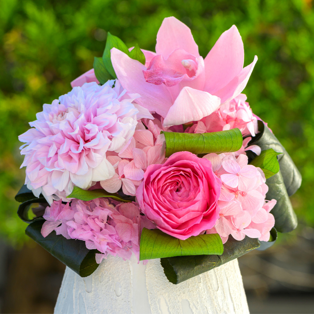 TOP花で選ぶ バラ セリーンノブレス プリザーブドフラワー 価格: ¥38,500 (税込) [ポイント還元 385ポイント〜] 販売期間: メッセージカード: 選択してください カード不要(¥0) 【無印字】お客様手書き用カード/送付先別の場合添付不可(¥0) 【自由文印字】カード→カート内備考欄へ内容指定(¥0) 【定型文】母の日用定型文(¥0) 【定型文】ありがとう(¥0) 【定型文】ありがとうございます(¥0) 【定型文】日頃の感謝の気持ちを込めて(¥0) 【定型文】お誕生日おめでとうございます(¥0) 【定型文】ご開業おめでとうございます(¥0) 【定型文】ご開店おめでとうございます(¥0) 【定型文】ご結婚おめでとうございます(¥0) 【定型文】おめでとうございます(¥0) 【定型文】お世話になりました(¥0) 【定型文】お疲れ様でした(¥0) 【定型文】これからもよろしくお願いします(¥0) 【定型文】いつまでもお元気でいてくださいね(¥0) 【定型文】お見舞い申し上げます(¥0) 【定型文】お悔やみ申し上げます(¥0) 【定型文】Thank You!(¥0) 【定型文】Happy Birthday(¥0) 【定型文】Happy Wedding(¥0) 【定型文】Especially for You(¥0) 【定型文】Congratulations!(¥0) 【定型文】クリスマス用定型文(¥0) 【定型文】父の日用定型文(¥0) 【定型文】敬老の日用定型文(¥0) 【定型文】フラワーバレンタイン用定型文(¥0) 【定型文】ホワイトデー用定型文(¥0) 【箔】Thank You ありがとうございます(¥330) 【箔】Happy Birthday お誕生日おめでとうございます(¥330) 【箔】Congratulations おめでとうございます(¥330) 【箔】Happy Wedding ご結婚おめでとうございます(¥330) 【箔】Especially for You 特別なあなたへ(¥330) ブランドバック: 選択してください 【袋】不要(¥0) 【袋】購入品ひとつが入るサイズの袋1枚(¥330) 【袋】購入品全てが入るサイズの袋1枚(¥330) 【袋】予備の袋希望(1商品につき2枚)(¥660) リボンorのし紙: 選択してください 【リボン】おまかせ(¥0) 【リボン】A茶細(¥0) 【リボン】Bロゴ(¥0) 【リボン】C金ラメ(¥0) 【リボン】D金サテン(¥0) 【リボン】Eグレー(¥0) 【リボン】リボン不要(¥0) 【のし】御祝(花結び) ※結婚祝と快気祝以外の用途(¥0) 【のし】寿(結婚祝い、引き出物等)(¥0) 【のし】祝 御開業(開業祝い)(¥0) 【のし】祝 御開店(開店祝い)(¥0) 【のし】祝 御新築(新築祝い)(¥0) 【のし】祝 御竣工(大型施設/ビル等の新築祝い)(¥0) 【のし】祝 ご出産(出産祝い)(¥0) 【のし】祝 ご入学(入学祝い)(¥0) 【のし】祝 ご卒業(卒業祝い)(¥0) 【のし】祝 ご成人(成人式のお祝い)(¥0) 【のし】祝 ○婚式/結婚何年目かをご記入ください(¥0) 【のし】御年賀(新年のご挨拶)(¥0) 【のし】御中元(夏のご挨拶)(¥0) 【のし】御歳暮(年の瀬、一年のご挨拶)(¥0) 【のし】快気祝(お見舞いへの返礼)(¥0) 【のし】(結婚)内祝 (結婚祝いの返礼)(¥0) 【のし】(出産)内祝/お子様の名前・かな要記入(¥0) 【のし】内祝(花結び) ※結婚・出産以外の用途(¥0) 【のし】祝 御改築(改築祝い)(¥0) 【のし】無印字のし(表書き無し)【花結び】(¥0) 【のし】無印字のし(表書き無し)【10本結び切】(¥0) 【のし】無印字のし(表書き無し)【5本結び切り】(¥0) 【のし】無印字のし(表書き無し)【仏式弔事用】(¥0) 【のし】御供(仏式)(¥0) 【のし】御霊前(仏式 49日前日まで)(¥0) 【のし】御仏前(仏式 49日以降)(¥0) 【のし】志(仏式の返礼)(¥0) 【のし】その他の表書き→備考欄に記載(¥0) 包装紙: 選択してください 【包】不要(クリアケースor箱にリボンがけ)(¥0) 【包装紙】水色ベル・フルールロゴ(¥330) 【包装紙】ブラウン(¥330) 【包装】梨地バッグ(¥330) 数量: 個 在庫: ○ 在庫 ○ 返品・交換について レビューはありません ギフト対応・サービス詳細 ◆この商品はクリアケースでお届けいたします。 ◆プリザーブドフラワーの取り扱い説明カード入り。 ※大きな文字の説明書をご希望の方は備考欄へご記入ください。 商品サイズ 幅20cm×奥行き19cm×高さ26.5cm 材質 ◆花材:(ローズ・ダリア・シンビジューム・ルスカス・レモンリーフ・アジサイ)◆重量: 560g(参考値) ◆花器:メタル プリザーブドフラワーは、水やり等の手間なく長期間保つ事から、バースデーギフト(誕生日祝い)・結婚祝い・開業祝い・開店祝い・新築祝い・内祝い・出産祝い・両親贈呈ギフトなどの贈り物、法人様向けご進物にはもちろん、アート性の高い作品はご自宅用のインテリアやオフィス・ショップのディスプレイに、落ち着いた色や故人のお好きだった色や花はお供え・仏事にもご利用頂いております。ブリザードフラワー、ブリザーブドフラワーではなく「保存する」という意味の「プリザーブドフラワー/preserved flower」が正しい名称となります。直射日光、水気・湿気を避けるとより美しさが長持ちします。 商品説明 セリーンノブレスについて やさしいピンクのグラデーションで仕上げた、春らしいフラワーアレンジメント。 ペールピンクからローズピンク、モーブピンクへと自然につながる色合いが、上品でフェミニン、癒しの印象を演出します。 丸みのある花器にダリア