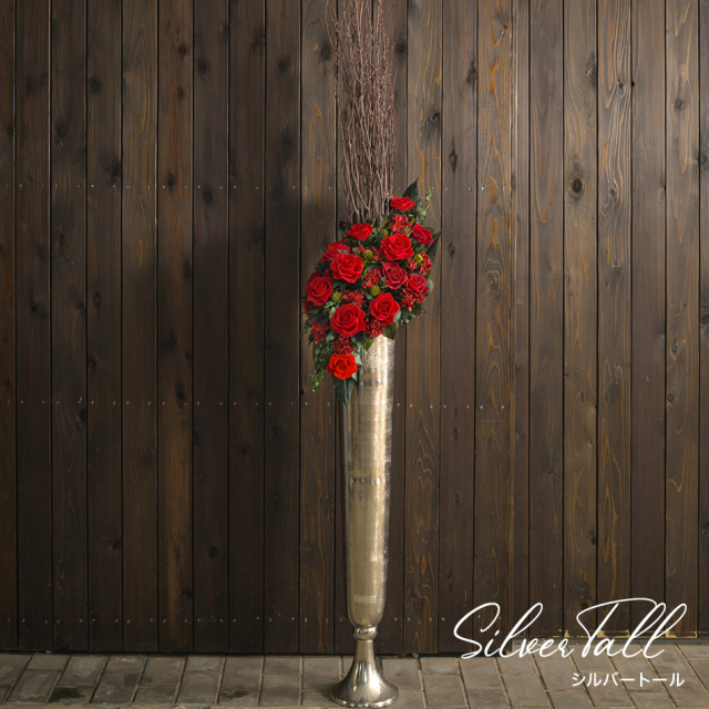 TOP花で選ぶ バラ プリザーブドフラワー シルバートール 価格: ¥165,000 (税込) [ポイント還元 1,650ポイント〜] 販売期間: 枝の高さ: 選択してください 規定サイズ通り 高さ調整する→備考欄へ メッセージカード: 選択してください カード不要(¥0) 【無印字】お客様手書き用カード/送付先別の場合添付不可(¥0) 【自由文印字】カード→カート内備考欄へ内容指定(¥0) 【定型文】母の日用定型文(¥0) 【定型文】ありがとう(¥0) 【定型文】ありがとうございます(¥0) 【定型文】日頃の感謝の気持ちを込めて(¥0) 【定型文】お誕生日おめでとうございます(¥0) 【定型文】ご開業おめでとうございます(¥0) 【定型文】ご開店おめでとうございます(¥0) 【定型文】ご結婚おめでとうございます(¥0) 【定型文】おめでとうございます(¥0) 【定型文】お世話になりました(¥0) 【定型文】お疲れ様でした(¥0) 【定型文】これからもよろしくお願いします(¥0) 【定型文】いつまでもお元気でいてくださいね(¥0) 【定型文】お見舞い申し上げます(¥0) 【定型文】お悔やみ申し上げます(¥0) 【定型文】Thank You!(¥0) 【定型文】Happy Birthday(¥0) 【定型文】Happy Wedding(¥0) 【定型文】Especially for You(¥0) 【定型文】Congratulations!(¥0) 【定型文】クリスマス用定型文(¥0) 【定型文】父の日用定型文(¥0) 【定型文】敬老の日用定型文(¥0) 【定型文】フラワーバレンタイン用定型文(¥0) 【定型文】ホワイトデー用定型文(¥0) 【箔】Thank You ありがとうございます(¥330) 【箔】Happy Birthday お誕生日おめでとうございます(¥330) 【箔】Congratulations おめでとうございます(¥330) 【箔】Happy Wedding ご結婚おめでとうございます(¥330) 【箔】Especially for You 特別なあなたへ(¥330) 立て札可能(枝に取り付け): 選択してください 【立て札】不要 【立て札】要:お祝い用→備考欄に内容指定 【立て札】要:お供え用→備考欄に内容指定 数量: 個 在庫: × 在庫 × 返品・交換について レビューはありません ◆大型商品のため配送日時は「ご希望」として承ります。 通常の宅急便サイズのような日時指定が出来かねますことを、予めご了承ください。 配送業者はヤマト運輸または佐川急便いずれかとなります。 ◆大型商品のため「のし紙」はおすすめいたしません。「立て札(枝に取り付け)」をご利用ください。 ギフト対応・サービス詳細 ◆この商品はダンボールに直接固定してお届けいたします。 ◆プリザーブドフラワーの取り扱い説明カード入り。 ※大きな文字の説明書をご希望の方は備考欄へご記入ください。 商品サイズ サイズ:W30cm×D22cm×H175cm 材質 ◆花材:バラ、レモンリーフ、サリグラム、ユーカリ、トロピカルリーフ、白樺 ◆花器:[シルバートール]アルミ素材 プリザーブドフラワーは、水やり等の手間なく長期間保つ事から、バースデーギフト(誕生日祝い)・結婚祝い・開業祝い・開店祝い・新築祝い・内祝い・出産祝い・両親贈呈ギフトなどの贈り物、法人様向けご進物にはもちろん、アート性の高い作品はご自宅用のインテリアやオフィス・ショップのディスプレイに、落ち着いた色や故人のお好きだった色や花はお供え・仏事にもご利用頂いております。ブリザードフラワー、ブリザーブドフラワーではなく「保存する」という意味の「プリザーブドフラワー/preserved flower」が正しい名称となります。直射日光、水気・湿気を避けるとより美しさが長持ちします。 開業祝い・開店祝いにプリザーブドフラワーを! 法人様向けのお花として想像されるのは、外に飾る「生花のスタンド花」や「胡蝶蘭の鉢植え」などが多いかと思いますが、 以下の理由でプリザーブドフラワーを選ばれる方が増えています。 《ポイント》 ・水やりや温度管理などの手間は一切不要! ・生花のように枯れかけの時の見栄えの悪さがない! ・他のお祝い花に紛れず、相手の印象に残る! ・3〜5年もの長期間飾っていただける! 一時的ですぐ枯れてしまう生花や、日々のお世話が大変な胡蝶蘭や観葉植物と異なり、プリザーブドフラワーの特性は、贈る相手に気遣いの込もったギフトとして最適です。 インテリアに何か物足りない、そんな方に選ばれています。 観葉植物に変わるインテリアフラワーとして、当店のプリザーブドフラワーが注目されています。 スリムでスタイリッシュな形も、場所を取らず飾りやすいと好評をいただいております。 たったひとつスタンドフラワーを置くだけで、まるでインテリア雑誌に出てくるような華やぎが生まれ、ワンランク上の空間を創造。もちろん一切お世話をする必要はありません。 明るいレッドや深みのあるワインレッドなど数種類の「赤」を使用。各種お祝いギフトから、オフィスの応接室の装飾にもおすすめ致します。 ■上記の基本色のほか、2色の組み合わせやコーポレートカラーに合わせた色変更などのオーダーメイドも承ります。 *オーダーメイドはオーダー料金をいただいております。お見積もりは無料につきお気軽にご相談ください。 (例:濃いめの「ピンク×レ