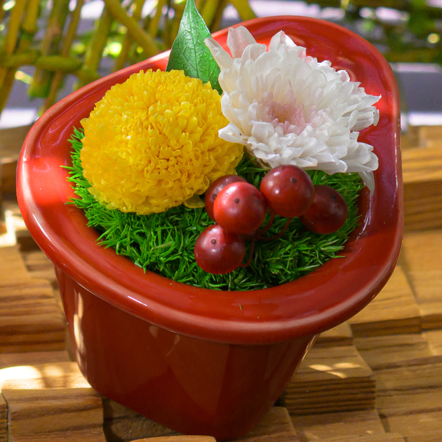 TOP特集 2026年 お正月飾り・迎春ギフト・お年賀 「迎春 − DARUMA」プリザーブドフラワー 価格: ¥7,150 (税込) [ポイント還元 71ポイント〜] 販売期間: メッセージカード: 選択してください カード不要(¥0) 【無印字】お客様手書き用カード/送付先別の場合添付不可(¥0) 【自由文印字】カード→カート内備考欄へ内容指定(¥0) 【定型文】母の日用定型文(¥0) 【定型文】ありがとう(¥0) 【定型文】ありがとうございます(¥0) 【定型文】日頃の感謝の気持ちを込めて(¥0) 【定型文】お誕生日おめでとうございます(¥0) 【定型文】ご開業おめでとうございます(¥0) 【定型文】ご開店おめでとうございます(¥0) 【定型文】ご結婚おめでとうございます(¥0) 【定型文】おめでとうございます(¥0) 【定型文】お世話になりました(¥0) 【定型文】お疲れ様でした(¥0) 【定型文】これからもよろしくお願いします(¥0) 【定型文】いつまでもお元気でいてくださいね(¥0) 【定型文】お見舞い申し上げます(¥0) 【定型文】お悔やみ申し上げます(¥0) 【定型文】Thank You!(¥0) 【定型文】Happy Birthday(¥0) 【定型文】Happy Wedding(¥0) 【定型文】Especially for You(¥0) 【定型文】Congratulations!(¥0) 【定型文】クリスマス用定型文(¥0) 【定型文】父の日用定型文(¥0) 【定型文】敬老の日用定型文(¥0) 【定型文】フラワーバレンタイン用定型文(¥0) 【定型文】ホワイトデー用定型文(¥0) 【箔】Thank You ありがとうございます(¥330) 【箔】Happy Birthday お誕生日おめでとうございます(¥330) 【箔】Congratulations おめでとうございます(¥330) 【箔】Happy Wedding ご結婚おめでとうございます(¥330) 【箔】Especially for You 特別なあなたへ(¥330) ピック選択: 選択してください 【ピ】不要(¥0) 【ピ】迎春(¥0) 【ピ】いつまでもお元気で(¥0) ブランドバック: 選択してください 【袋】不要(¥0) 【袋】購入品ひとつが入るサイズの袋1枚(¥330) 【袋】購入品全てが入るサイズの袋1枚(¥330) 【袋】予備の袋希望(1商品につき2枚)(¥660) リボンorのし紙: 選択してください 【リボン】おまかせ(¥0) 【リボン】A茶細(¥0) 【リボン】Bロゴ(¥0) 【リボン】C金ラメ(¥0) 【リボン】D金サテン(¥0) 【リボン】Eグレー(¥0) 【リボン】リボン不要(¥0) 【のし】御祝(花結び) ※結婚祝と快気祝以外の用途(¥0) 【のし】寿(結婚祝い、引き出物等)(¥0) 【のし】祝 御開業(開業祝い)(¥0) 【のし】祝 御開店(開店祝い)(¥0) 【のし】祝 御新築(新築祝い)(¥0) 【のし】祝 御竣工(大型施設/ビル等の新築祝い)(¥0) 【のし】祝 ご出産(出産祝い)(¥0) 【のし】祝 ご入学(入学祝い)(¥0) 【のし】祝 ご卒業(卒業祝い)(¥0) 【のし】祝 ご成人(成人式のお祝い)(¥0) 【のし】祝 ○婚式/結婚何年目かをご記入ください(¥0) 【のし】御年賀(新年のご挨拶)(¥0) 【のし】御中元(夏のご挨拶)(¥0) 【のし】御歳暮(年の瀬、一年のご挨拶)(¥0) 【のし】快気祝(お見舞いへの返礼)(¥0) 【のし】(結婚)内祝 (結婚祝いの返礼)(¥0) 【のし】(出産)内祝/お子様の名前・かな要記入(¥0) 【のし】内祝(花結び) ※結婚・出産以外の用途(¥0) 【のし】祝 御改築(改築祝い)(¥0) 【のし】無印字のし(表書き無し)【花結び】(¥0) 【のし】無印字のし(表書き無し)【10本結び切】(¥0) 【のし】無印字のし(表書き無し)【5本結び切り】(¥0) 【のし】無印字のし(表書き無し)【仏式弔事用】(¥0) 【のし】御供(仏式)(¥0) 【のし】御霊前(仏式 49日前日まで)(¥0) 【のし】御仏前(仏式 49日以降)(¥0) 【のし】志(仏式の返礼)(¥0) 【のし】その他の表書き→備考欄に記載(¥0) 包装紙: 選択してください 【包】不要(クリアケースor箱にリボンがけ)(¥0) 【包装紙】水色ベル・フルールロゴ(¥330) 【包装紙】ブラウン(¥330) 【包装】梨地バッグ(¥330) 数量: 個 在庫: ○ 在庫 ○ 返品・交換について レビューはありません ギフト対応・サービス詳細 ◆この商品はクリアケース入りでお届けいたします。 ◆プリザーブドフラワーの取り扱い説明カード入り。 ※大きな文字の説明書をご希望の方は備考欄へご記入ください。 商品サイズ 幅9cm×奥行き9cm×高さ11cm クリアケースサイズ:(幅10.5cm×奥行き10.5cm×高さ10.5cm) 材質 ◆花材:(ことね菊、ポンポン菊、アイビー、苔) ◆花器:陶器 プリザーブドフラワーは、水やり等の手間なく長期間保つ事から、バースデーギフト(誕生日祝い)・結婚祝い・開業祝い・開店祝い・新築祝い・内祝い・出産祝い・両親贈呈ギフトなどの贈り物、法人様向けご進物にはもちろん、アート性の高い作品はご自宅用のインテリアやオフィス・ショップのディスプレイに、落ち着いた色や故人のお好きだった色や花はお供え・仏事にもご利用頂いております。ブリザードフラワー、ブリザーブドフラワーではなく「保存する」という意味の「プリザーブドフラワー/preserved flower」が正しい名称となります。直射日光、水気・湿気を避けるとより美しさが長持ちします。 商品説明 迎春 − DARUMAについて ポンポン菊とことね菊に、瑞々しいポールモスを合わせた小ぶりの可愛らしいアレンジ。 ちょこんと置くだけで空間が