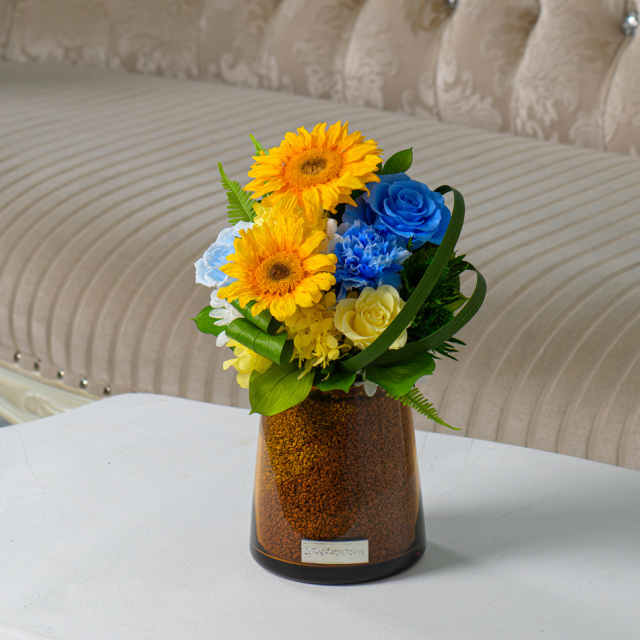 TOPシーンで選ぶ 法人様向けプリザーブドフラワーギフト案内TOP 「期間限定」プリザーブドフラワー ヴィヴァーチェAR-L 価格: ¥33,000 (税込) [ポイント還元 330ポイント〜] 販売期間: メッセージカード: 選択してください カード不要(¥0) 【無印字】お客様手書き用カード/送付先別の場合添付不可(¥0) 【自由文印字】カード→カート内備考欄へ内容指定(¥0) 【定型文】母の日用定型文(¥0) 【定型文】ありがとう(¥0) 【定型文】ありがとうございます(¥0) 【定型文】日頃の感謝の気持ちを込めて(¥0) 【定型文】お誕生日おめでとうございます(¥0) 【定型文】ご開業おめでとうございます(¥0) 【定型文】ご開店おめでとうございます(¥0) 【定型文】ご結婚おめでとうございます(¥0) 【定型文】おめでとうございます(¥0) 【定型文】お世話になりました(¥0) 【定型文】お疲れ様でした(¥0) 【定型文】これからもよろしくお願いします(¥0) 【定型文】いつまでもお元気でいてくださいね(¥0) 【定型文】お見舞い申し上げます(¥0) 【定型文】お悔やみ申し上げます(¥0) 【定型文】Thank You!(¥0) 【定型文】Happy Birthday(¥0) 【定型文】Happy Wedding(¥0) 【定型文】Especially for You(¥0) 【定型文】Congratulations!(¥0) 【定型文】クリスマス用定型文(¥0) 【定型文】父の日用定型文(¥0) 【定型文】敬老の日用定型文(¥0) 【定型文】フラワーバレンタイン用定型文(¥0) 【定型文】ホワイトデー用定型文(¥0) 【箔】Thank You ありがとうございます(¥330) 【箔】Happy Birthday お誕生日おめでとうございます(¥330) 【箔】Congratulations おめでとうございます(¥330) 【箔】Happy Wedding ご結婚おめでとうございます(¥330) 【箔】Especially for You 特別なあなたへ(¥330) ブランドバック: 選択してください 【袋】不要(¥0) 【袋】購入品ひとつが入るサイズの袋1枚(¥330) 【袋】購入品全てが入るサイズの袋1枚(¥330) 【袋】予備の袋希望(1商品につき2枚)(¥660) リボンorのし紙: 選択してください 【リボン】おまかせ(¥0) 【リボン】A茶細(¥0) 【リボン】Bロゴ(¥0) 【リボン】C金ラメ(¥0) 【リボン】D金サテン(¥0) 【リボン】Eグレー(¥0) 【リボン】リボン不要(¥0) 【のし】御祝(花結び) ※結婚祝と快気祝以外の用途(¥0) 【のし】寿(結婚祝い、引き出物等)(¥0) 【のし】祝 御開業(開業祝い)(¥0) 【のし】祝 御開店(開店祝い)(¥0) 【のし】祝 御新築(新築祝い)(¥0) 【のし】祝 御竣工(大型施設/ビル等の新築祝い)(¥0) 【のし】祝 ご出産(出産祝い)(¥0) 【のし】祝 ご入学(入学祝い)(¥0) 【のし】祝 ご卒業(卒業祝い)(¥0) 【のし】祝 ご成人(成人式のお祝い)(¥0) 【のし】祝 ○婚式/結婚何年目かをご記入ください(¥0) 【のし】御年賀(新年のご挨拶)(¥0) 【のし】御中元(夏のご挨拶)(¥0) 【のし】御歳暮(年の瀬、一年のご挨拶)(¥0) 【のし】快気祝(お見舞いへの返礼)(¥0) 【のし】(結婚)内祝 (結婚祝いの返礼)(¥0) 【のし】(出産)内祝/お子様の名前・かな要記入(¥0) 【のし】内祝(花結び) ※結婚・出産以外の用途(¥0) 【のし】祝 御改築(改築祝い)(¥0) 【のし】無印字のし(表書き無し)【花結び】(¥0) 【のし】無印字のし(表書き無し)【10本結び切】(¥0) 【のし】無印字のし(表書き無し)【5本結び切り】(¥0) 【のし】無印字のし(表書き無し)【仏式弔事用】(¥0) 【のし】御供(仏式)(¥0) 【のし】御霊前(仏式 49日前日まで)(¥0) 【のし】御仏前(仏式 49日以降)(¥0) 【のし】志(仏式の返礼)(¥0) 【のし】その他の表書き→備考欄に記載(¥0) 数量: 個 在庫: ○ 在庫 ○ 返品・交換について レビューはありません ギフト対応・サービス詳細 ◆この商品はクリアケースでお届けいたします。 ◆プリザーブドフラワーの取り扱い説明カード入り。 ※大きな文字の説明書をご希望の方は備考欄へご記入ください。 商品サイズ 幅19cm×奥行き15cm×高さ29cm重さ:600g (参考値) 材質 ◆花材:(ヒマワリ、バラ、アジサイ、カーネーション、ルスカス、レモンリーフ、エリンジウム、ミスカンサス、ヤマシダ) ◆花器:ガラス 時を越えた美の調べ イタリア語で「活気に満ちた、生き生きとした」という意味を持つ「VIVACE」。 透明感あふれる青のブルーローズと太陽を思わせる鮮やかなイエローローズが織りなすハーモニーは、上質で洗練されたインテリアアートとして空間に華やぎと彩りを添えます。 Original CollectionVIVACE 燦々と降り注ぐ太陽のような明るさと、清涼感ある青空を思わせる色彩をまとった、ひまわりのアレンジメント。温もりのある器に、イエローとブルーのコントラストが美しく映えるデザインで、洗練された印象を演出します。器の中に流れる細やかな砂が花々の彩りを引き立て、奥行きと立体感を生み出します。空間に華やぎと清涼感を添える、特別な存在感を放つアレンジメントです。 ARについて 豊穣な大地を連想させる温かみのある器に、繊細なグラデーションを描くダリアを主役に据えたアレンジメント。器の中に流れる小粒の砂が、花々の色彩をより一層際立たせ、そのコントラストが洗練された美しさを生み出します。お部屋に優しく馴染