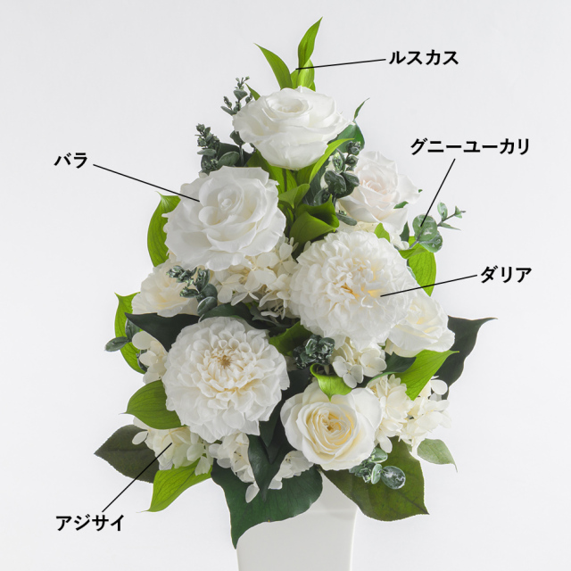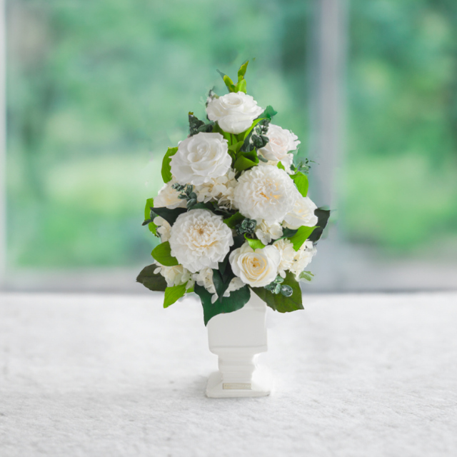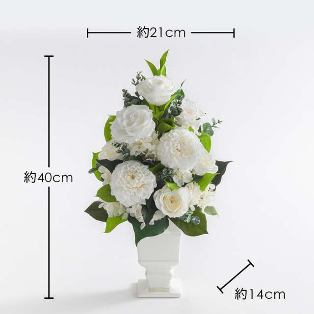 TOPシーンで選ぶ 仏花・お供え花・お悔やみの花 プリザーブドフラワー ホワイトグレイス 価格: ¥33,000 (税込) [ポイント還元 330ポイント〜] 販売期間: メッセージカード: 選択してください カード不要(¥0) 【無印字】お客様手書き用カード/送付先別の場合添付不可(¥0) 【自由文印字】カード→カート内備考欄へ内容指定(¥0) 【定型文】母の日用定型文(¥0) 【定型文】ありがとう(¥0) 【定型文】ありがとうございます(¥0) 【定型文】日頃の感謝の気持ちを込めて(¥0) 【定型文】お誕生日おめでとうございます(¥0) 【定型文】ご開業おめでとうございます(¥0) 【定型文】ご開店おめでとうございます(¥0) 【定型文】ご結婚おめでとうございます(¥0) 【定型文】おめでとうございます(¥0) 【定型文】お世話になりました(¥0) 【定型文】お疲れ様でした(¥0) 【定型文】これからもよろしくお願いします(¥0) 【定型文】いつまでもお元気でいてくださいね(¥0) 【定型文】お見舞い申し上げます(¥0) 【定型文】お悔やみ申し上げます(¥0) 【定型文】Thank You!(¥0) 【定型文】Happy Birthday(¥0) 【定型文】Happy Wedding(¥0) 【定型文】Especially for You(¥0) 【定型文】Congratulations!(¥0) 【定型文】クリスマス用定型文(¥0) 【定型文】父の日用定型文(¥0) 【定型文】敬老の日用定型文(¥0) 【定型文】フラワーバレンタイン用定型文(¥0) 【定型文】ホワイトデー用定型文(¥0) 【箔】Thank You ありがとうございます(¥330) 【箔】Happy Birthday お誕生日おめでとうございます(¥330) 【箔】Congratulations おめでとうございます(¥330) 【箔】Happy Wedding ご結婚おめでとうございます(¥330) 【箔】Especially for You 特別なあなたへ(¥330) 立て札orのし紙(ケース正面貼付け): 選択してください 【立て札/のし紙】不要 【立て札】お祝い用→備考欄に内容指定 【立て札】お供え用→備考欄に内容指定 【のし】御祝 ※結婚祝/快気祝を除く 【のし】寿(結婚祝い、引き出物等) 【のし】祝 御開業(開業祝い) 【のし】祝 御開店(開店祝い) 【のし】祝 御新築(新築祝い) 【のし】祝 御竣工(大型施設/ビル等の新築祝い) 【のし】祝 ご出産(出産祝い) 【のし】祝 ご入学(入学祝い) 【のし】祝 ご卒業(卒業祝い) 【のし】祝 ご成人(成人式のお祝い) 【のし】祝 ○婚式/結婚何年目かをご記入ください 【のし】御年賀(新年のご挨拶) 【のし】御中元(夏のご挨拶) 【のし】御歳暮(年の瀬、一年のご挨拶) 【のし】快気祝(お見舞いへの返礼) 【のし】(結婚)内祝 (結婚祝いの返礼) 【のし】(出産)内祝/お子様の名前・かな要記入 【のし】内祝 (結婚、出産を除く) 【のし】祝 御改築 (改築祝い) 【のし】無印字のし(表書き無し)【花結び】 【のし】無印字のし(表書き無し)【10本結び切】 【のし】無印字のし(表書き無し)【5本結び切り】 【のし】無印字のし(表書き無し)【仏式弔事用】 【のし】御供(仏式) 【のし】御霊前(仏式 49日前日まで) 【のし】御仏前(仏式 49日以降) 【のし】志(仏式の返礼) 【のし】★その他 ※備考欄にご指定ください ブランドバック: 選択してください 【袋】不要(¥0) 【袋】購入品ひとつが入るサイズの袋1枚(¥330) 【袋】購入品全てが入るサイズの袋1枚(¥330) 【袋】予備の袋希望(1商品につき2枚)(¥660) 有料アクリルケース(税別 16,000円): 選択してください 不要 【アクリルケース・要】花と一緒にお届け(¥17,600) 【アクリルケース・要】花を先にお届け(¥17,600) ※納期2週間・キャンセル不可 数量: 個 在庫: ○ 在庫 ○ 返品・交換について レビューはありません ギフトサービス 即日発送 無料ラッピング メッセージカード のし立札 説明書 手つき袋 包装紙 ピック 取り寄せ 領収証・請求書 Gift Service Details この商品はクリアケース入りでお届けいたします。 プリザーブドフラワーの取り扱い説明カード入り。 ※大きな文字の説明書をご希望の方は備考欄へご記入ください。 Product Dimensions Product Size 幅21cm × 奥行き14cm × 高さ40cm重さ:700g (参考値) Clear Case Size 六角形(各辺15cm × 高さ37cm) Materials 花材:(ダリア、バラ、ルスカス、グニーユーカリ、アジサイ、リーフ類) 花器:陶器 長期間飾れる 水やり不要 About Preserved Flowers プリザーブドフラワーは、水やり等の手間なく長期間保つ事から、バースデーギフト(誕生日祝い)・結婚祝い・開業祝い・開店祝い・新築祝い・内祝い・出産祝い・両親贈呈ギフトなどの贈り物、法人様向けご進物にはもちろん、アート性の高い作品はご自宅用のインテリアやオフィス・ショップのディスプレイに、落ち着いた色や故人のお好きだった色や花はお供え・仏事にもご利用頂いております。 ブリザードフラワー、ブリザーブドフラワーではなく「保存する」という意味の「プリザーブドフラワー/preserved flower」が正しい名称となります。直射日光、水気・湿気を避けるとより美しさが長持ちします。 商品説明 ホワイトグレイス 純白のバラの優雅さに、ふんわり咲くダリアの華やかさを添えた上質なアレンジメント。 瑞々しいグリーンを絶妙なバランスで組み合わせることで、軽やか